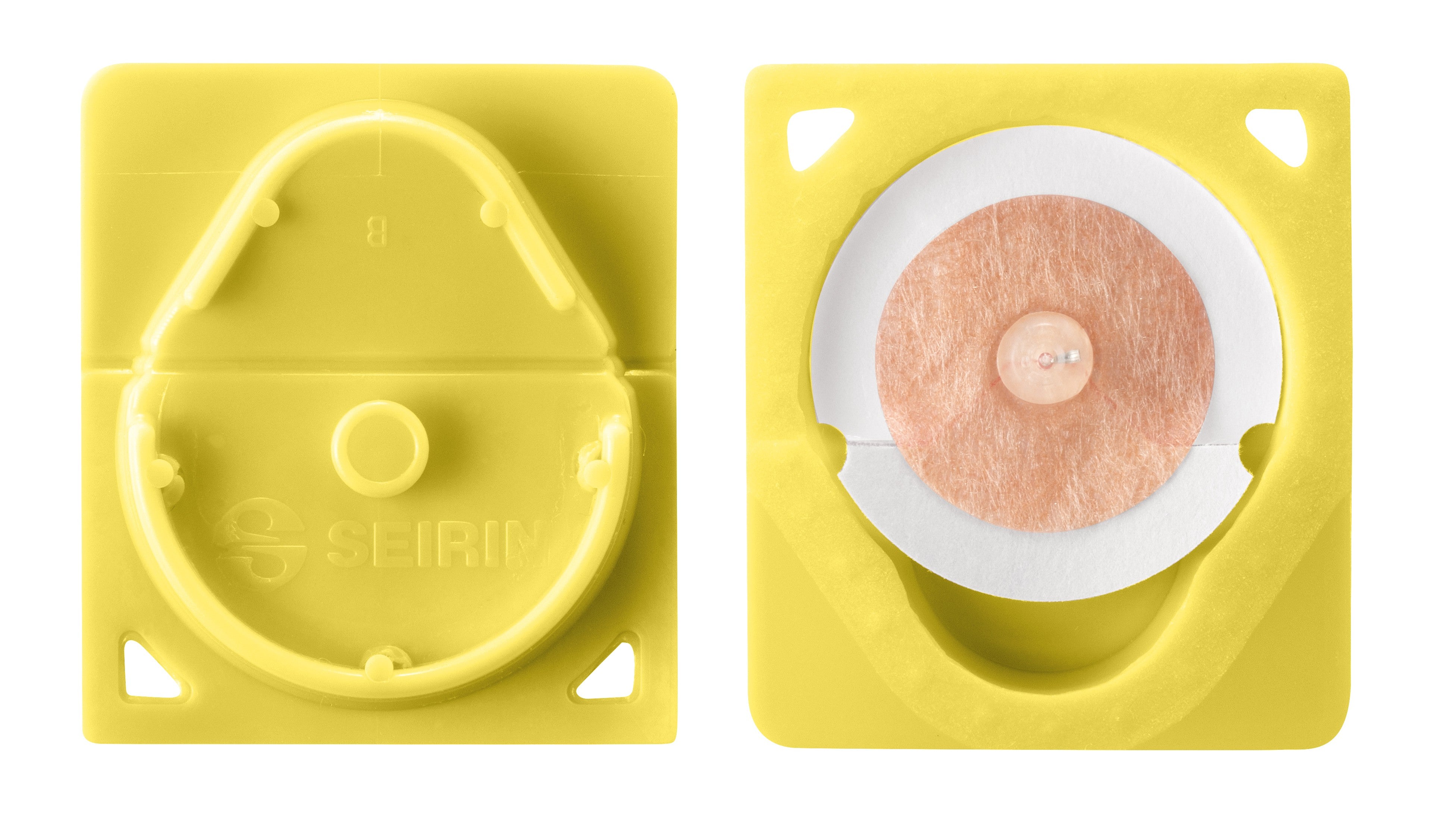 La aguja NEW PYONEX está incrustada en un soporte de plástico coloreado que no se asemeja a un envase médico. El esparadrapo transpirable se aplica sobre la piel y permite una fijación precisa, segura y permanente (mínimo 48 horas), incluso al lavarse o ducharse. La fina aguja de 0,15 mm queda oculta en la superficie adhesiva y es apenas perceptible para el paciente. La aguja permanente se estimula presionando con el dedo en el punto de presión incorporado en la parte superior de la escayola, que es fácil de sentir. Esto implica activamente a los pacientes en la terapia y aumenta el efecto terapéutico. Otra ventaja es que los padres pueden seguir tratando suavemente a sus hijos en casa si es necesario. Las agujas NEW PYONEX pueden utilizarse para el cuerpo y, dependiendo de las condiciones anatómicas, también para puntos auriculares. Dado que se dispone de tamaños especialmente cortos (0,30 - 1,5 mm), las agujas permanentes NEW PYONEX se utilizan preferentemente para niños y pacientes sensibles al dolor, así como con fobia a las agujas. El esparadrapo transpirable permite una fijación precisa y permanente tras la suave inserción de la aguja PYONEX. La aguja permanente se estimula presionando con el dedo en el punto de presión incorporado en la escayola, que es fácil de sentir.