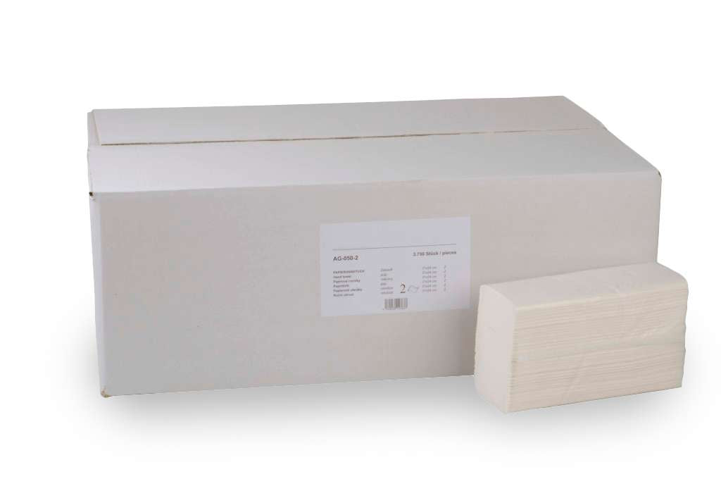 Papírtörlő, összehajtogatott törülköző, 2 rétegű, fehér, 3750 db dobozonként (P.100.0040)