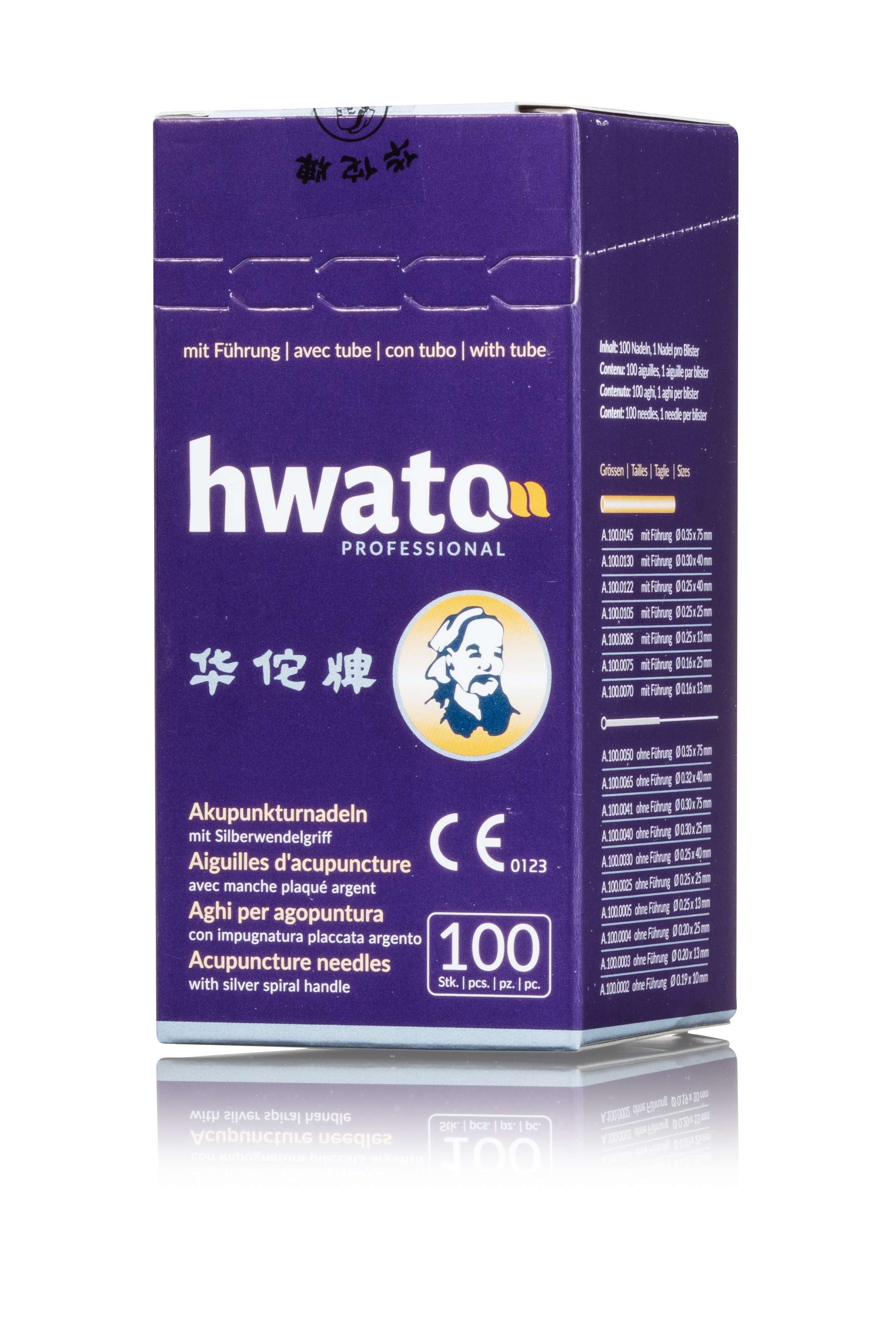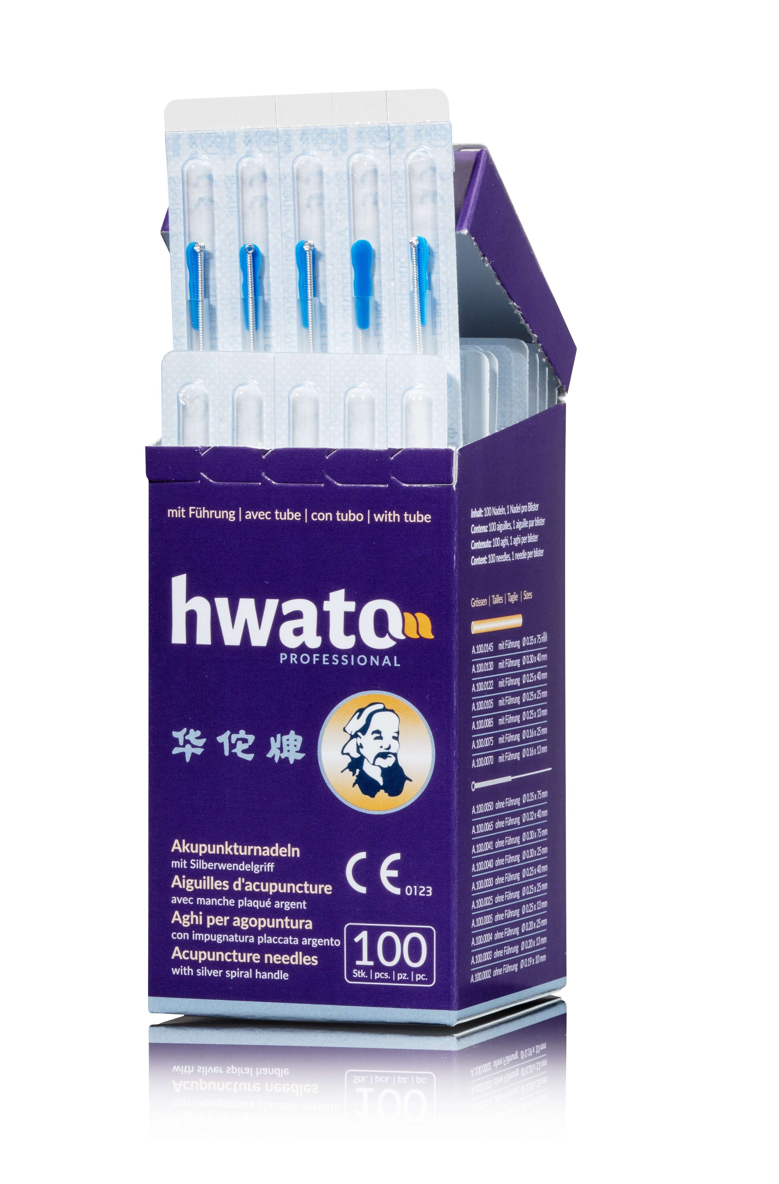 HWATO med guide, sølvbelagt spiralhåndtak, 100 nåler per eske (A.100.0070.K)